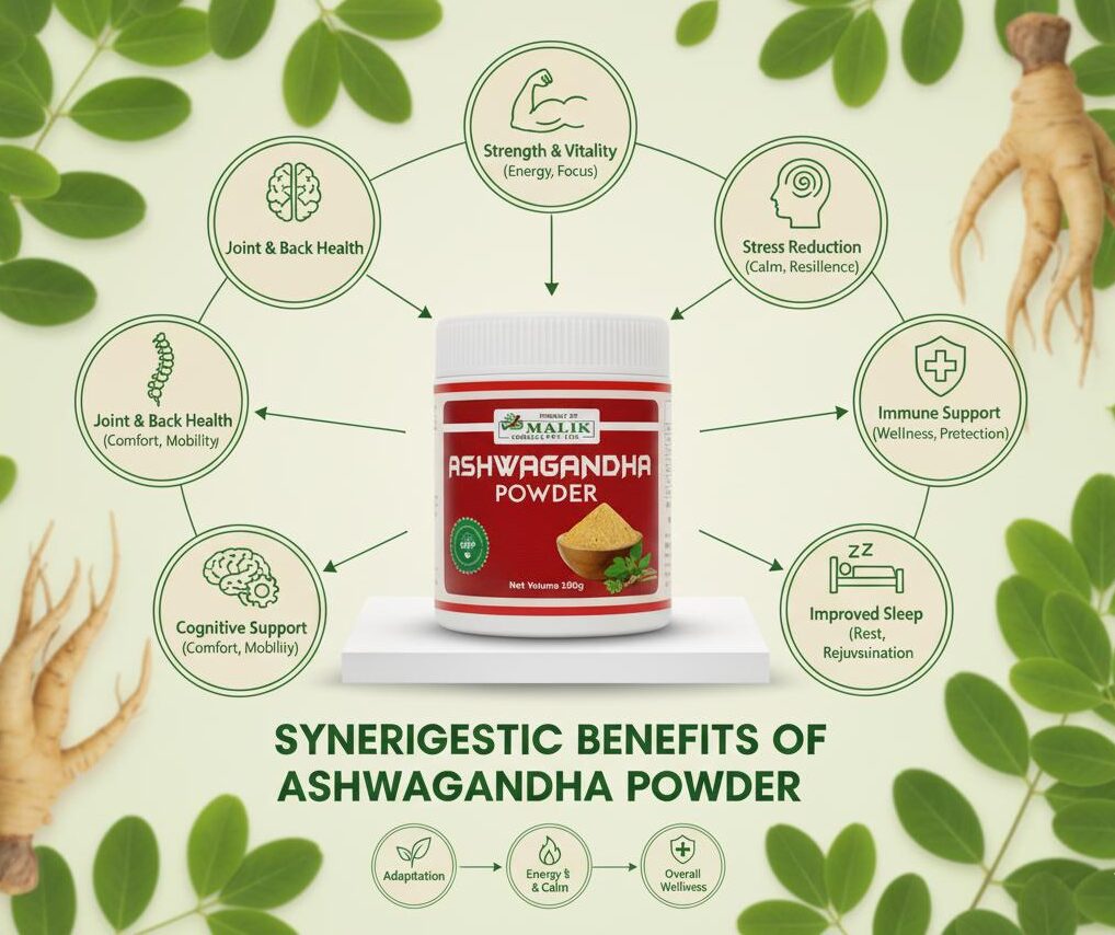 Stress Reduction: Ashwagandha is known for its adaptogenic properties, helping the body manage stress by lowering cortisol levels and promoting a sense of calm.