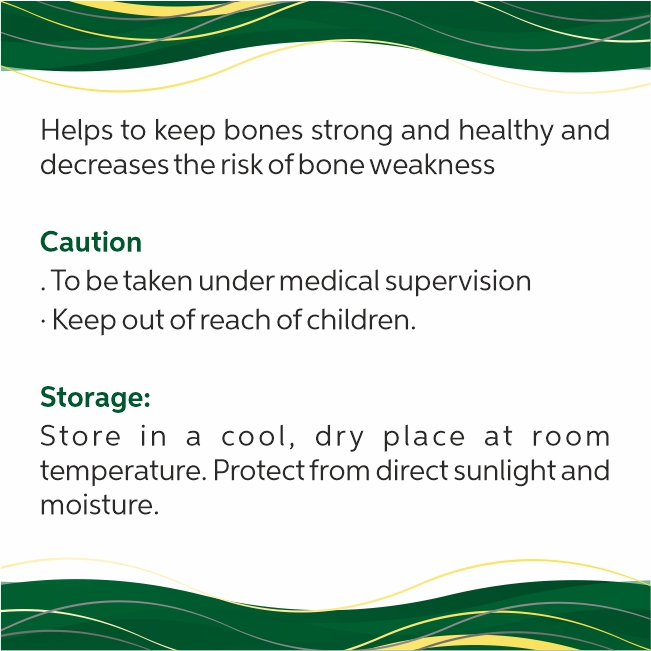 Helps to keep bones strong and healthy and decreases the risk of bone weakness
